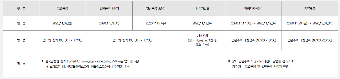 분양일정은 특별공급(11/2), 일반공급 1순위(11/3), 당첨자 발표 11/12(목) 입니다!