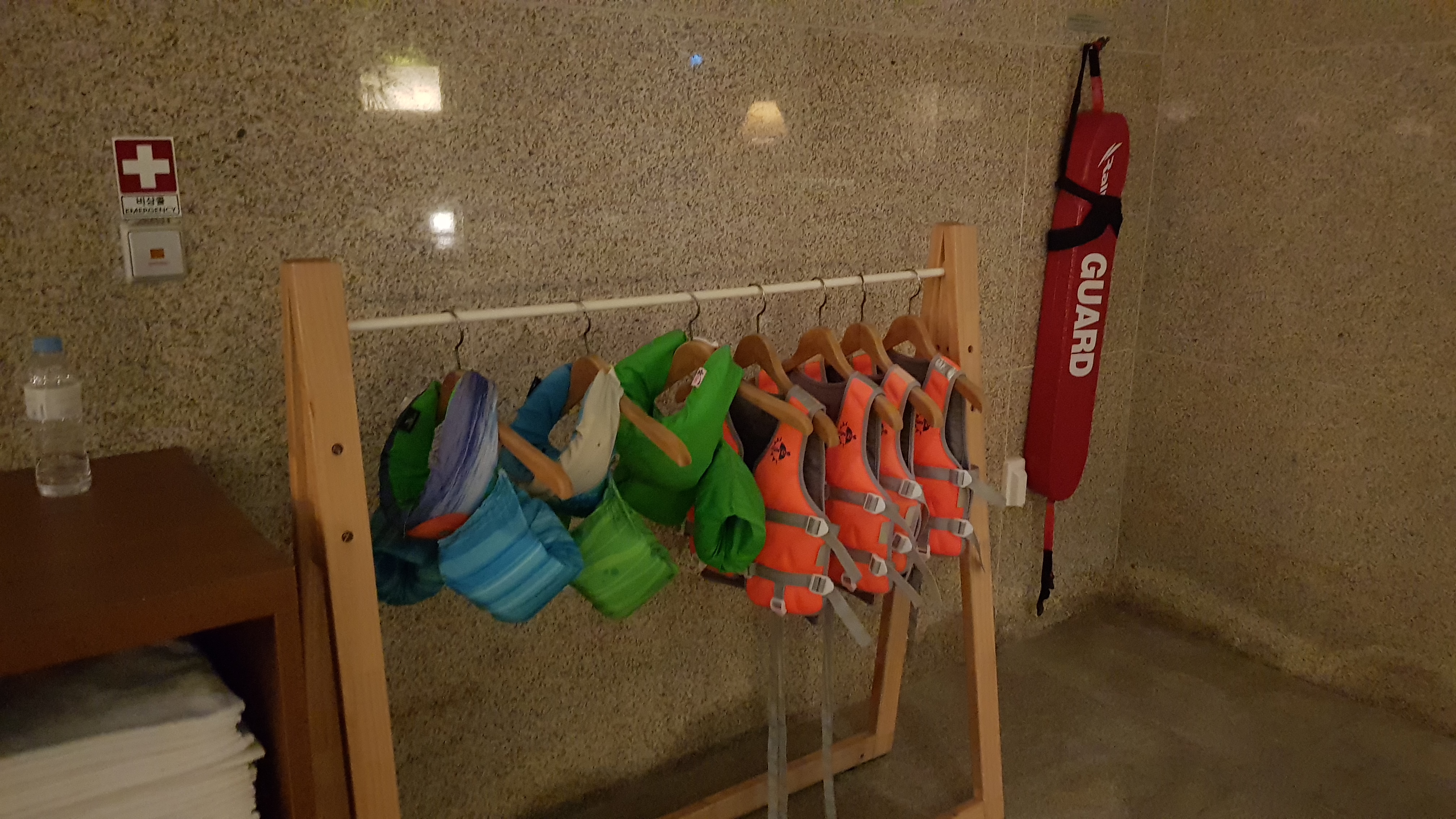 아이들을 위한 구명조끼도 수영장 안에 위치하고 있어요!