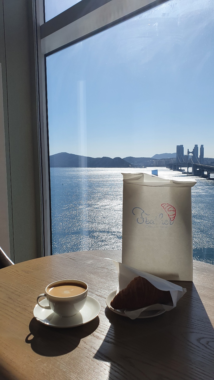 해리단길 베이커리인 페더 크로아상에서 사온 빵과 커피를 즐기는 사진이에요!